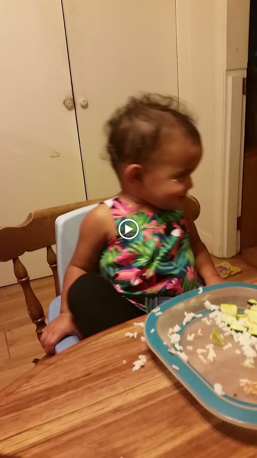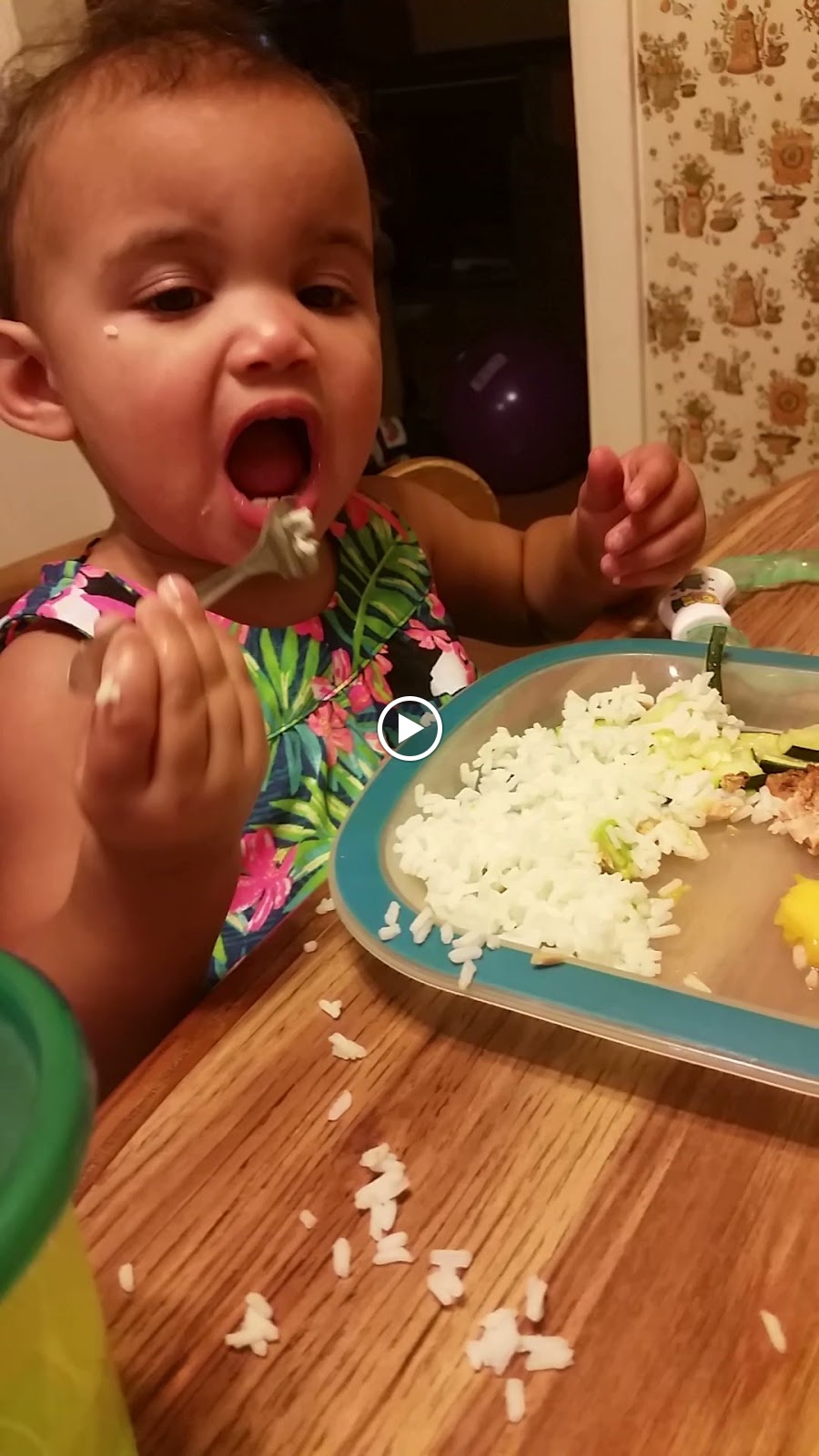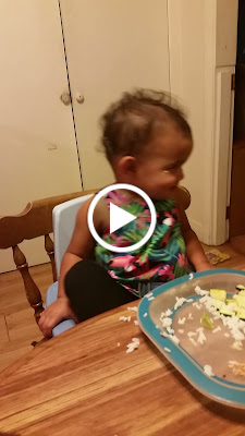 Tonight for dinner, Kaycee had rice. It's quite a site to watch her try to eat rice with a fork and spoon!